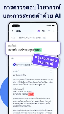 แต่ **AI Email APP** เป็นมากกว่าแค่กล่องจดหมายรวม ศูนย์รวมอัจฉริยะที่แท้จริงนี้ขับเคลื่อนด้วยเทคโนโลยีปัญญาประดิษฐ์ล้ำสมัย ที่จะเข้ามาปฏิวัติวิธีการเขียนและการโต้ตอบอีเมลของคุณ เมื่อคุณกำลังร่างข้อความสำคัญหรือตอบกลับอย่างเร่งด่วน ฟังก์ชัน AI Check จะทำงานแบบเรียลไทม์ เพื่อตรวจสอบไวยากรณ์ การสะกดคำ และความถูกต้องของเนื้อหา มั่นใจได้ว่าทุกข้อความที่คุณส่งออกไปจะมีความเป็นมืออาชีพ ปราศจากข้อผิดพลาด ช่วยประหยัดเวลาในการพิสูจน์อักษร และปรับปรุงกระบวนการสื่อสารให้ราบรื่นไร้ที่ติ