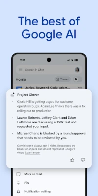 ในฐานะองค์ประกอบสำคัญของ Google Workspace, Chat ได้รับการออกแบบมาเพื่อตอบสนองความต้องการด้านการสื่อสารและการทำงานร่วมกันสำหรับผู้ใช้งานทั่วไป สถาบันการศึกษา และธุรกิจทุกขนาด ช่วยเปลี่ยนแปลงวิธีการทำงานเป็นทีมของคุณให้ทันสมัยและมีประสิทธิภาพมากยิ่งขึ้น ด้วยฟีเจอร์ที่เสริมความแข็งแกร่งและความปลอดภัยจาก Google โปรดทราบว่าฟีเจอร์พรีเมียมบางส่วนอาจต้องมีการสมัครใช้บริการแบบชำระเงิน Google Workspace มุ่งมั่นที่จะมอบเครื่องมือที่จำเป็นสำหรับการประสบความสำเร็จในยุคดิจิทัล