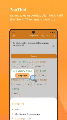 ยกระดับการเรียนรู้และทักษะการสื่อสารของคุณไปอีกขั้นด้วยฟังก์ชันเสียงอันทรงพลัง ค้นหาคำศัพท์ด้วยเสียงของคุณเองได้อย่างง่ายดาย เหมาะอย่างยิ่งเมื่อมือไม่ว่าง หรือต้องการความรวดเร็วในการค้นหา และไม่เพียงเท่านั้น คุณยังสามารถฟังการออกเสียงที่ถูกต้องของแต่ละคำ ซึ่งเป็นกุญแจสำคัญในการพัฒนาสำเนียงและความมั่นใจในการพูด นอกจากนี้ คุณสามารถสร้างคลังคำศัพท์ส่วนตัวด้วย "ตะกร้าเก็บคำ" บันทึกคำที่สำคัญหรือคำที่ต้องจดจำไว้ เพื่อทบทวนและเข้าถึงได้ทุกเมื่อ ช่วยให้การสะสมความรู้เป็นเรื่องง่ายและเป็นระบบ