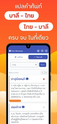 PuriDict พจนานุกรมบาลี-ไทยออนไลน์ ช่วยให้คุณค้นหาคำศัพท์บาลีพร้อมความหมายภาษาไทยที่แม่นยำและเข้าใจง่ายได้อย่างสะดวกสบาย เข้าถึงคลังคำศัพท์อันกว้างขวางเพื่อการเรียนรู้และศึกษาพระไตรปิฎกได้ทุกที่ทุกเวลา