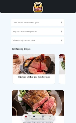 แอป Roast Perfect คือคู่มือครบวงจรสำหรับคนรักเนื้อ ให้คำแนะนำทีละขั้นตอน ตั้งแต่การเลือกเนื้อวัวที่เหมาะสมที่สุดในร้าน การเตรียม การย่าง และการเสิร์ฟเนื้อวัวอย่างมืออาชีพ เพื่อผลลัพธ์การย่างที่สมบูรณ์แบบและน่าประทับใจทุกครั้ง